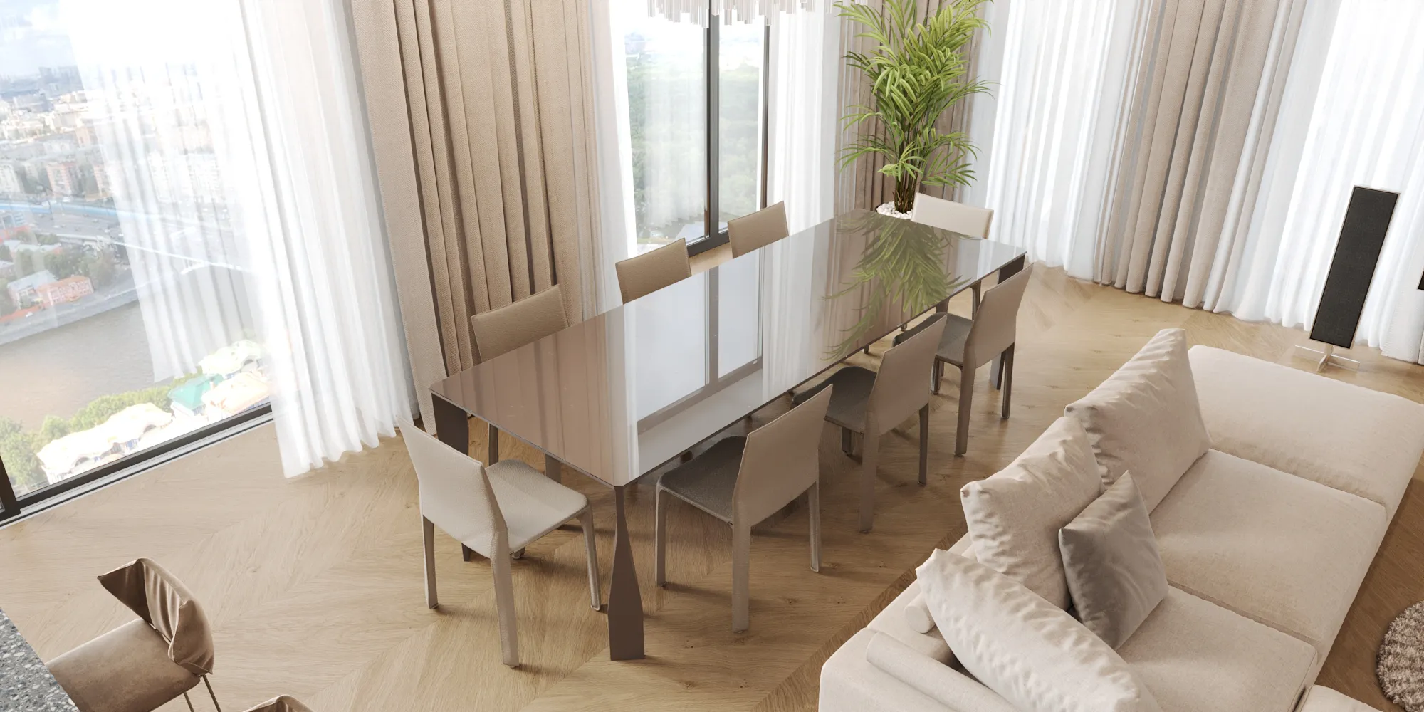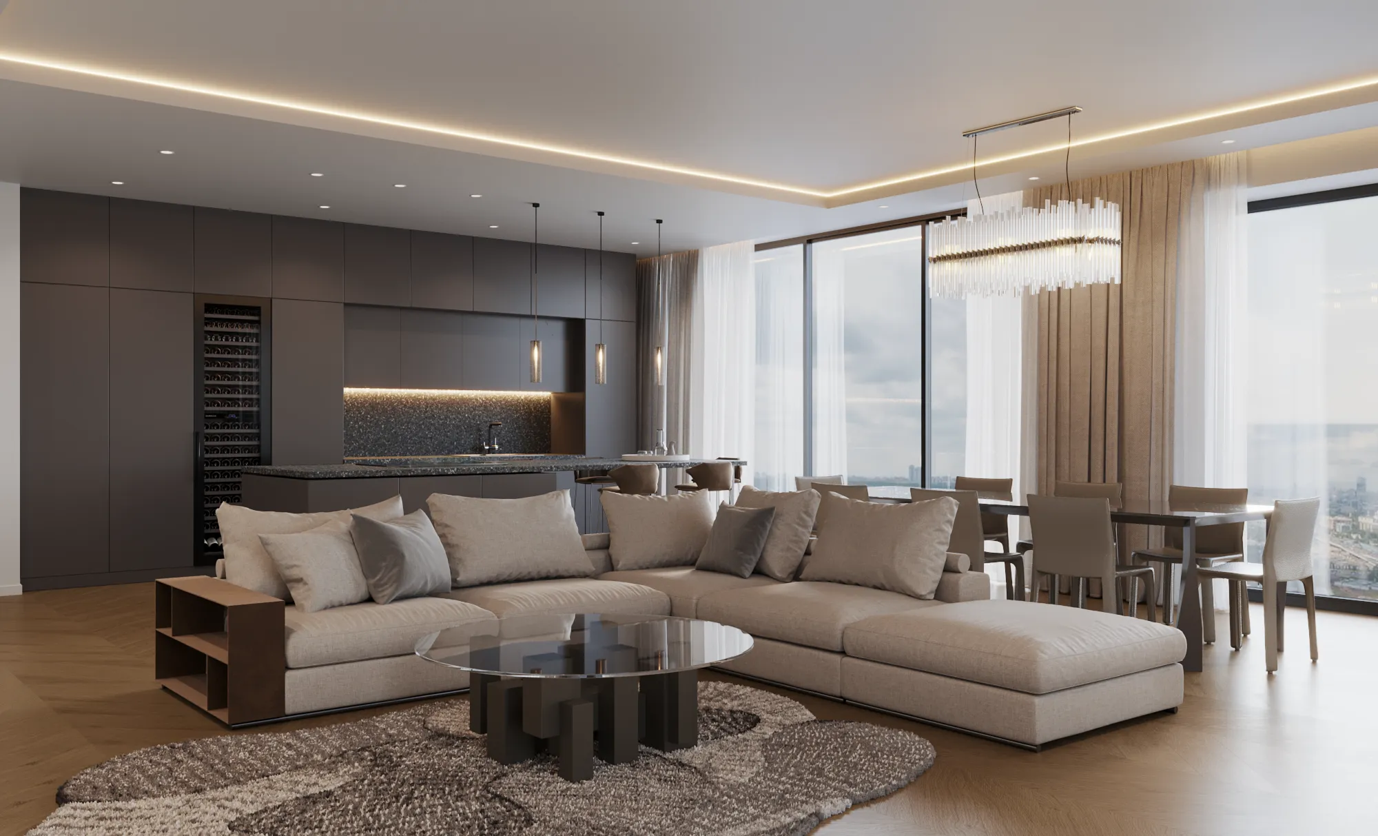 Nestled in a vibrant downtown setting, this charming 2-bedroom apartment oers a cozy urban retreat for its owners. Serving as a convenient city getaway, it provides a comfortable haven whenever they’re in town. Its strategic location enables them to enjoy cultural attractions and nightlife at a moment’s notice. Yet, with their permanent home outside the city, they can still savor a quieter pace of life. Thoughtful interior design ensures a welcoming environment, achieving the perfect blend of urban convenience and suburban comfort.